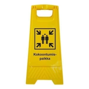 Kirkkaan keltainen huomioväri ja selkeät tekstit varmistavat että viesti huomataan heti. Kevyt ja kokoontaitettava rakenne tekee A-telineestä helpon siirtää, pystyttää ja varastoida – juuri sinne missä merkintää tarvitaan.