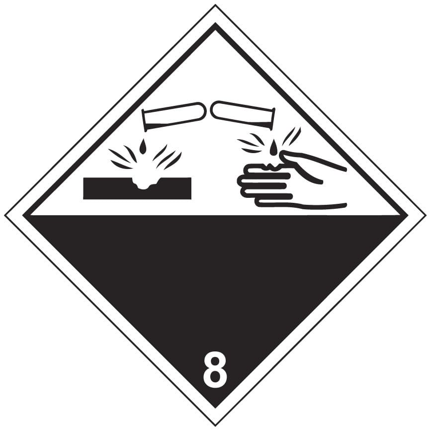ADR 8 Syövyttävät aineet. Tähän luokkaan kuuluvat mm. happoakut, muurahaishappo, rikkihappo, lipeä ja elohopea.