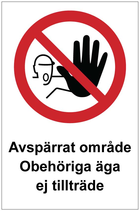 Avspärrat område Obehöriga äga ej tillträde