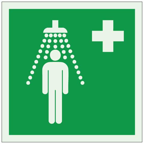 Jälkivalaiseva opaste hätäsuihkun paikan merkitsemiseen