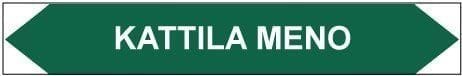 Putkistojen ainetta ja kulkusuuntaa merkitsevä tarra. Kulkusuunnasta riippuen toinen kärki leikataan pois.
