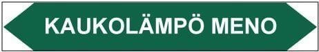 Putkistojen ainetta ja kulkusuuntaa merkitsevä tarra. Kulkusuunnasta riippuen toinen kärki leikataan pois.