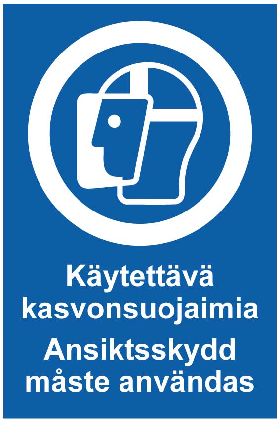 Käytettävä kasvonsuojaimia Ansiktsskydd måste användas