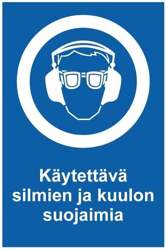 Käytettävä silmien ja kuulon suojaimia