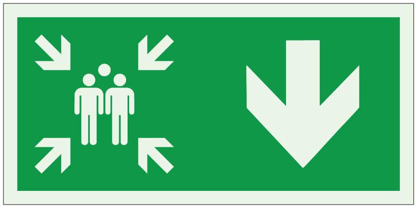 Jälkivalaiseva poistumistieopaste kokoontumispaikka alas