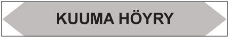 Putkistojen ainetta ja kulkusuuntaa merkitsevä tarra. Kulkusuunnasta riippuen toinen kärki leikataan pois.