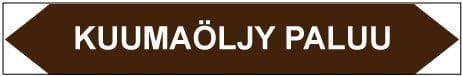 Putkistojen ainetta ja kulkusuuntaa merkitsevä tarra. Kulkusuunnasta riippuen toinen kärki leikataan pois.