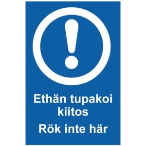 Tältä sivulta löydät ohjekyltit, jotka parantavat ymmärrettävyyttä ja lisäävät turvallisuutta monikielisissä ympäristöissä. Ohjemerkit molemmilla kotimaisilla kielillä vähentävät väärinkäsityksiä, tehostavat viestintää ja auttavat täyttämään viranomaisvaatimukset erityisesti alueilla, joissa useampi kieli on käytössä. Ohjesymbolit ovat ISO 7010 -standardin mukaisia, mikä varmistaa niiden tunnistettavuuden, turvallisuusvaatimusten täyttymisen sekä kansainvälisen yhdenmukaisuuden.