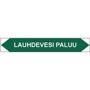 Putkistojen ainetta ja kulkusuuntaa merkitsevä tarra. Kulkusuunnasta riippuen toinen kärki leikataan pois. Kokovaihtoehdot 160×25 mm ja 250×40 mm. Materiaali tarra. Useita vaihtoehtoja putkistojen merkintään. Putkistotarrojen liimapinta on erittäin vahva.