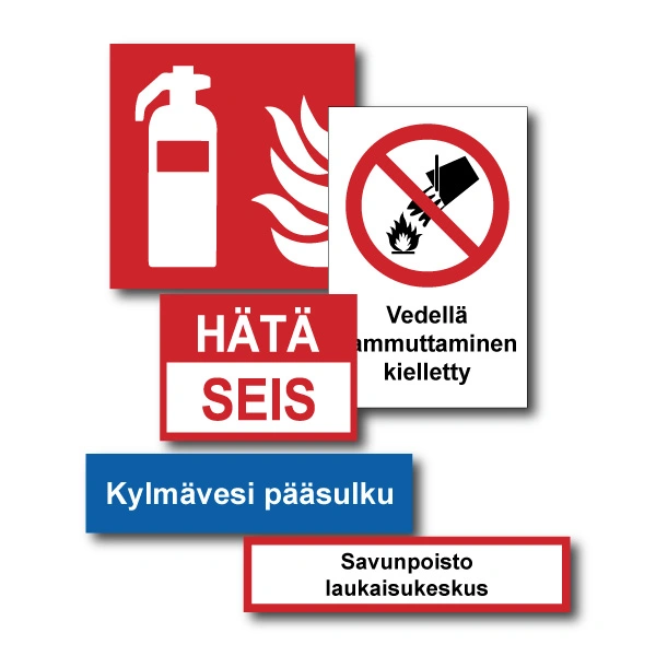 Turvamerkin turvakyltit valmistetaan kestävistä materiaaleista ja ne täyttävät voimassa olevat ISO- ja SFS-standardit. Tarjoamme ratkaisuja sekä sisä- että ulkokäyttöön, eri koko- ja materiaalivaihtoehdoilla. Selkeä visuaalinen ilme ja hyvä näkyvyys takaavat, että viesti välittyy tehokkaasti kaikissa olosuhteissa. Tutustu kattavaan turvakyltit-valikoimaamme ja varmista tilojesi turvallisuus ammattimaisilla opasteratkaisuilla.