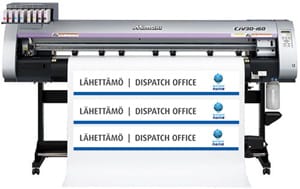 - Kylttien layout tulostetaan Mimaki ekoliuotintulostimella, jonka jälkeen se laminoidaan ja asennetaan halutulle pohjamateriaalille.