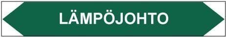 Putkistojen ainetta ja kulkusuuntaa merkitsevä tarra. Kulkusuunnasta riippuen toinen kärki leikataan pois.