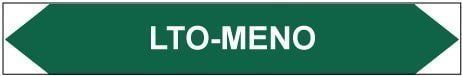 Putkistojen ainetta ja kulkusuuntaa merkitsevä tarra. Kulkusuunnasta riippuen toinen kärki leikataan pois.