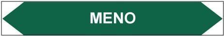 Putkistojen ainetta ja kulkusuuntaa merkitsevä tarra. Kulkusuunnasta riippuen toinen kärki leikataan pois.