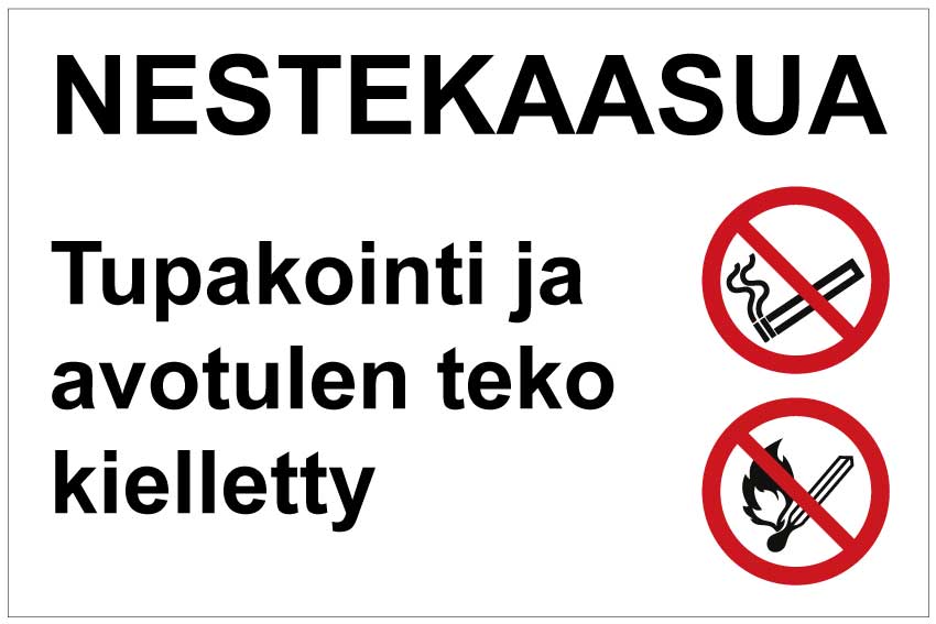 NESTEKAASUA Tupakointi ja avotulen teko kielletty