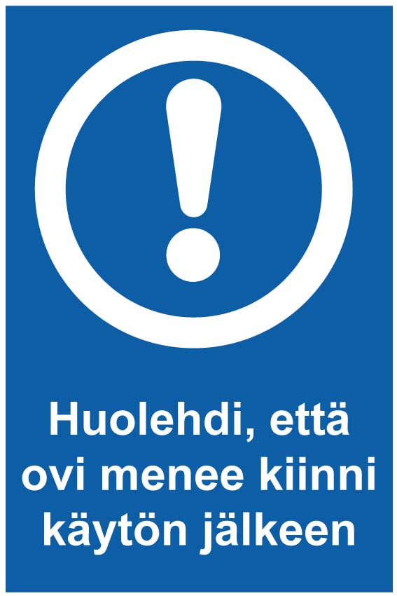 Sisätiloihin useimmiten riittävä ratkaisu on kaksipuolinen tarrakiinnitys, jonka saa kylttiin 0,90 € lisähinnalla. Tämä on helppo ja vaivaton kiinnitystapa, ja asennus on nopeaa. Kaksipuolinen