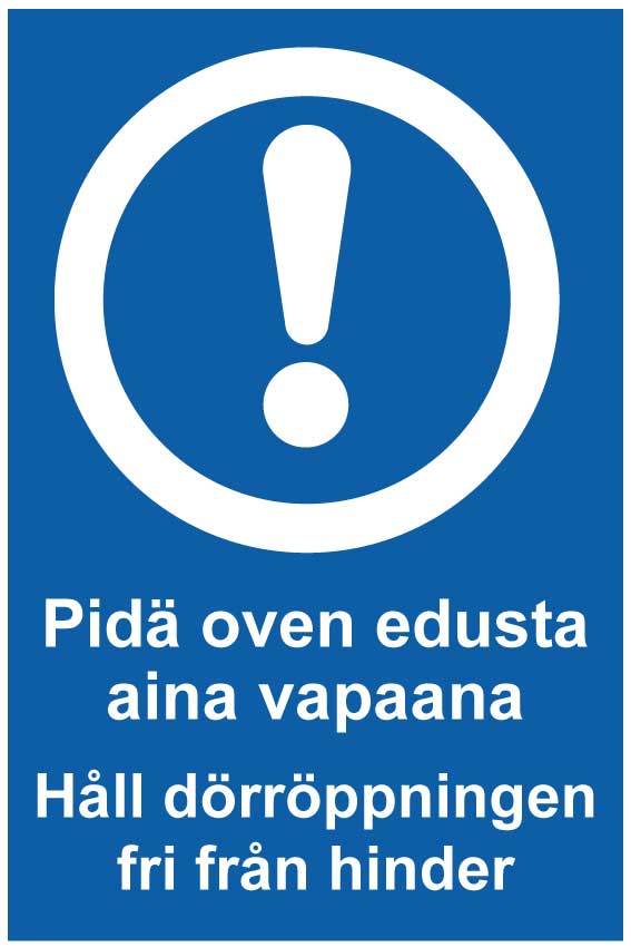 Pidä oven edusta aina vapaana Håll dörröppningen fri från hinder