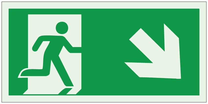 Jälkivalaiseva poistumistieopaste portaat alas oikealle