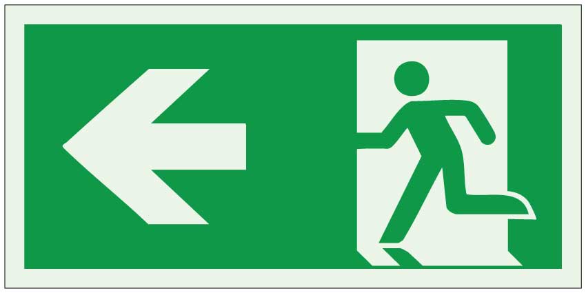 Jälkivalaiseva poistumistieopaste vasemmalle