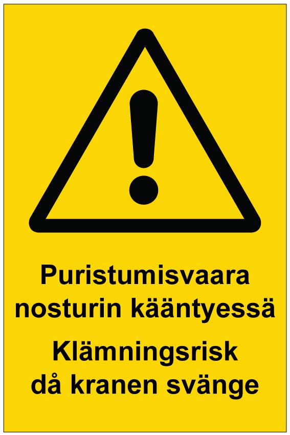 Puristumisvaara nosturin kääntyessä Klämningsrisk då kranen svänge