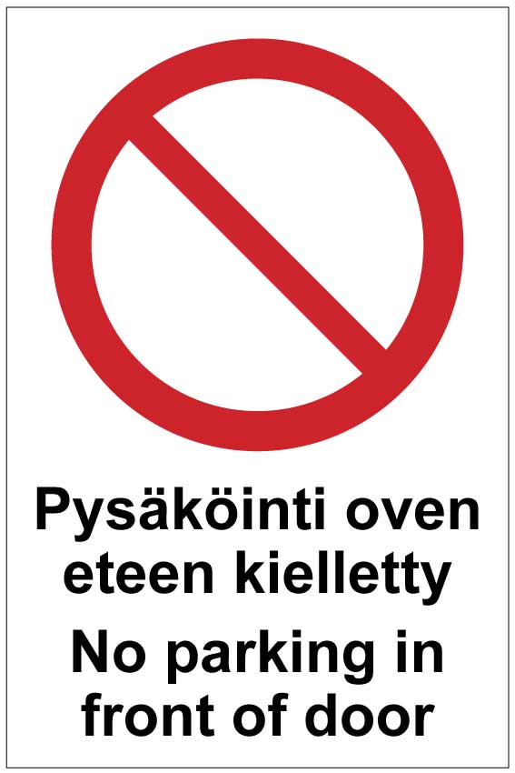 Pysäköinti oven eteen kielletty No parking in front of door