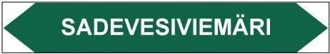 Putkistojen ainetta ja kulkusuuntaa merkitsevä tarra. Kulkusuunnasta riippuen toinen kärki leikataan pois.