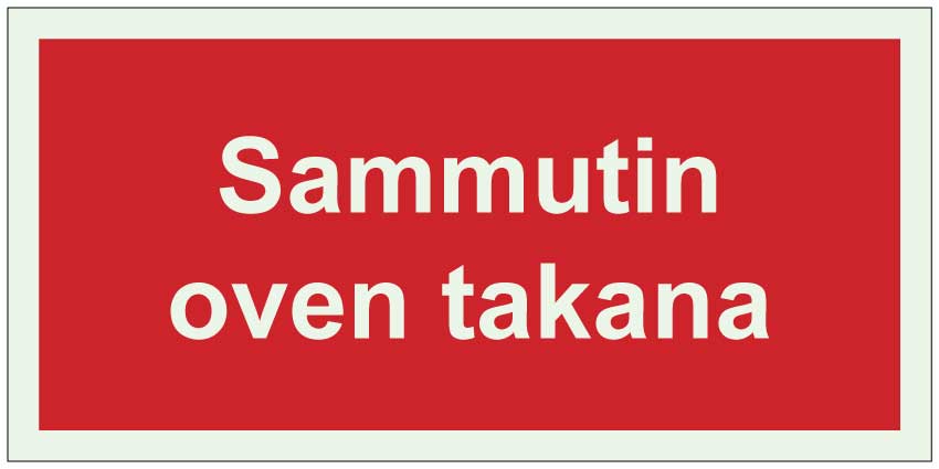 Jälkivalaiseva opaste, joka kertoo sammuttimen sijainnin oven takana