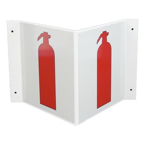 Sammutin merkki V-kilpipohjalla, heijastava. Merkki sopii sisätiloihin, jossa se on nähtävissä useammasta suunnasta.