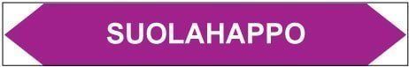 Putkistojen ainetta ja kulkusuuntaa merkitsevä tarra. Kulkusuunnasta riippuen toinen kärki leikataan pois.