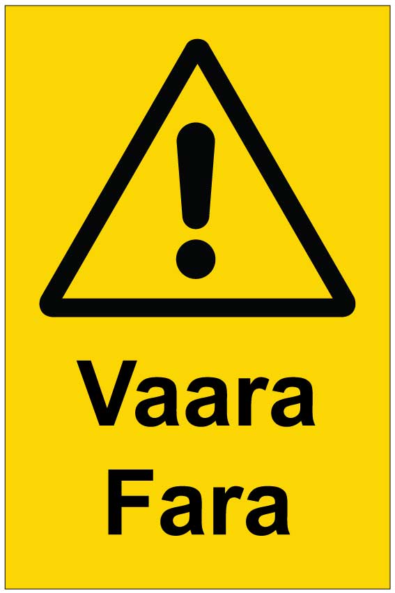 Varoituskyltti molemmilla kotimaisilla kielillä