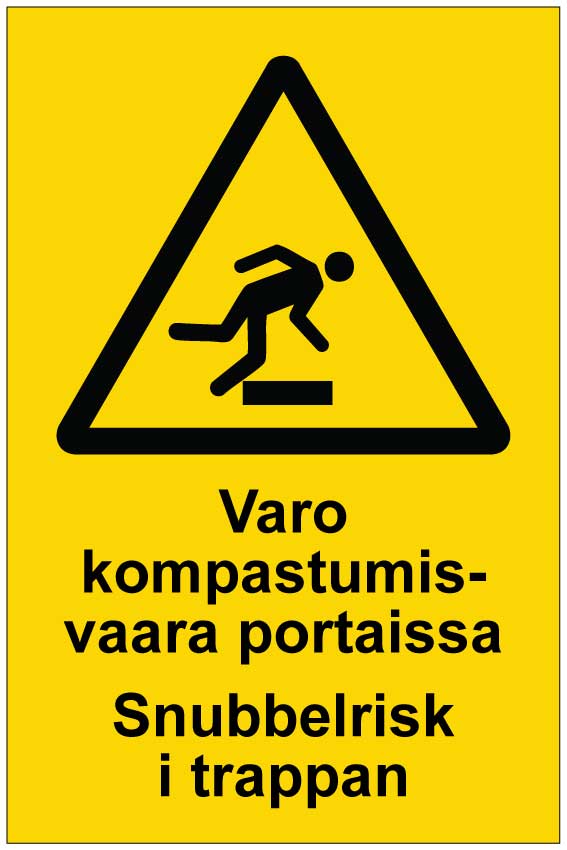 Varo kompastumisvaara portaissa Snubbelrisk i trappan