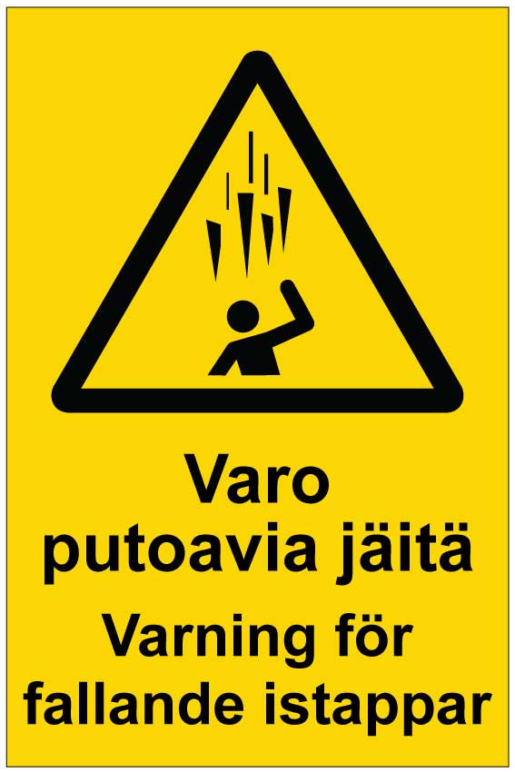 Varoituskyltti molemmilla kotimaisilla kielillä