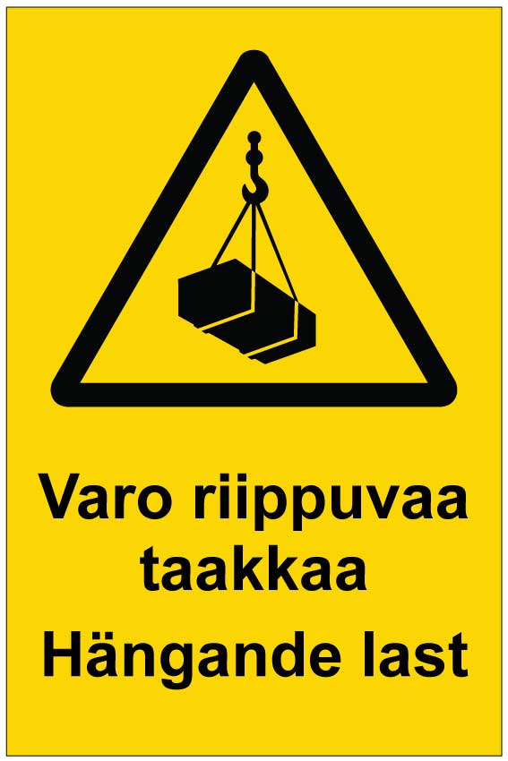Varoituskyltti molemmilla kotimaisilla kielillä